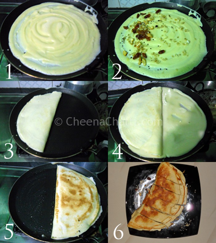 - Now pour the second layer of batter, in the empty right half of the appachatti with close contact to the middle of first layer.